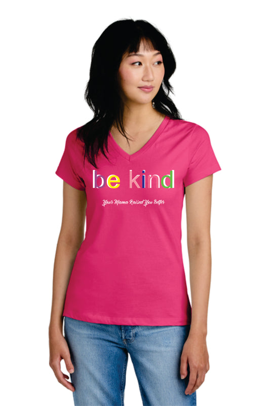 BE KIND on Ring Spun District Tee, Ladies V-neck